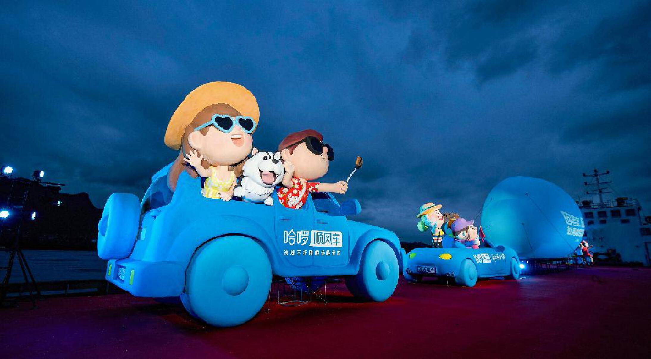 船上不仅搭载着顺风车、租车、单车的巨型装置,更设置了“对话气泡”互动云屏,让用户通过哈啰App上传的家乡寄语得以展示,实现了线上线下的多维互动。