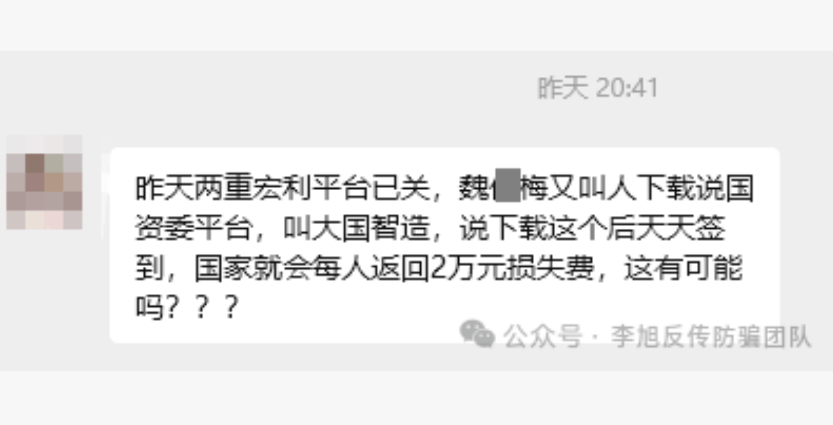 2、裂变传播与精神控制:境外诈骗团伙在国内物色“团队长”,设立线下工作室,借助微信群进行传销式运营,对参与者实施持续“洗脑”。许多中老年人不仅投入资金,更倾注了大量情感,深信自己是在参与“国家大事”。在“盛世中华”诈骗案中,部分受骗者甚至在警方上门取证时,因被灌输“保密纪律”而拒绝配合,极大增加了案件侦办难度。