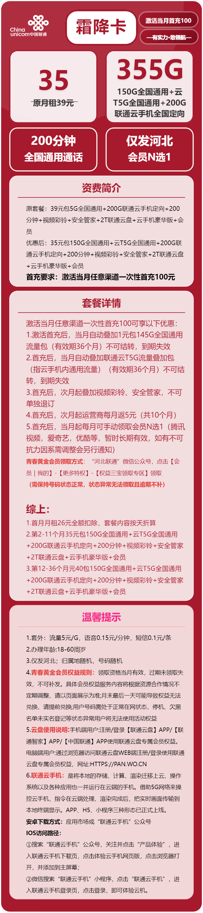 河北联通流量卡推荐:联通霜降卡35元包355开云体育- 开云体育官方网站- APP下载G流量(155G通用+200G定向)+200分钟+会员附河北卡办理全攻略