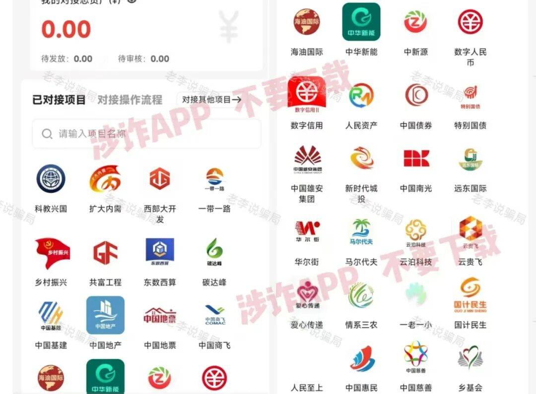 有些时日的老项目了。自上线就打着国家旗号,声称参与者实名注册即可获得100万“购房助力金”,随后通过各种投资项目、拉人邀新不断累积“助力金”额度,其间多次中断又再度重启。看着APP中的账户金额不断增加,让参与者误认为自己真的有这么多资产。然而等到想要兑换房产时,就会开始要求参与者缴纳各种费用。