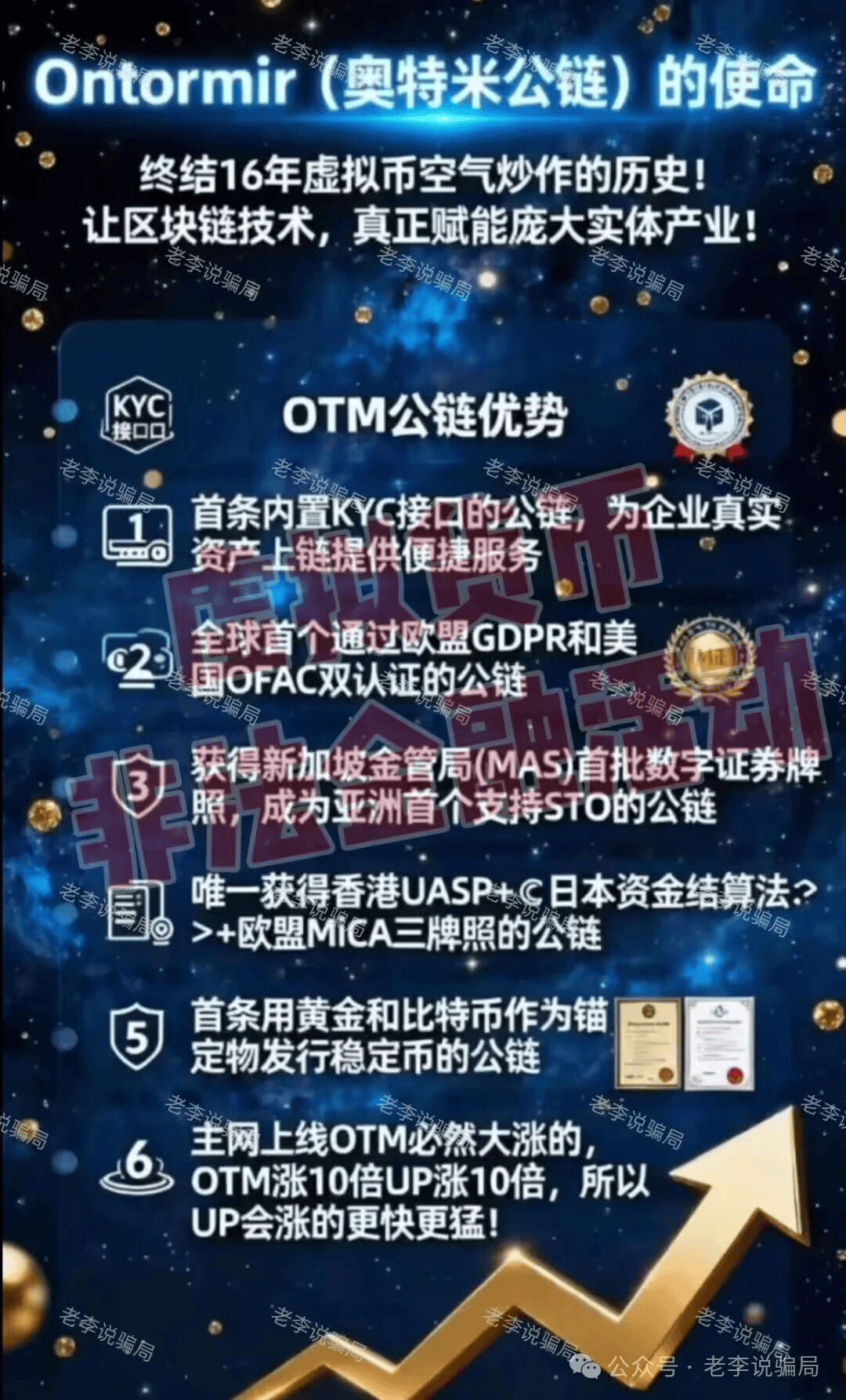 打着RWA、公链旗号,依靠“涨10倍”等高收益为参与者“画饼”。号称拥有欧盟MICA、香港UASP+等顶级合规牌照,实则根本无法核实线万台矿机等底层资产更是无任何验证依据,12000TPS的技术参数远超行业常识且无数据支撑。这本质是借热门概念炒作出的资金盘,后续跑路、风险极大,建议大家别碰。