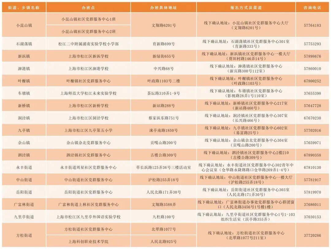 “随申办市民云”APP搜索“松江区旗舰店”申请办理。线上报名成功后,线下确认地址详见表格。