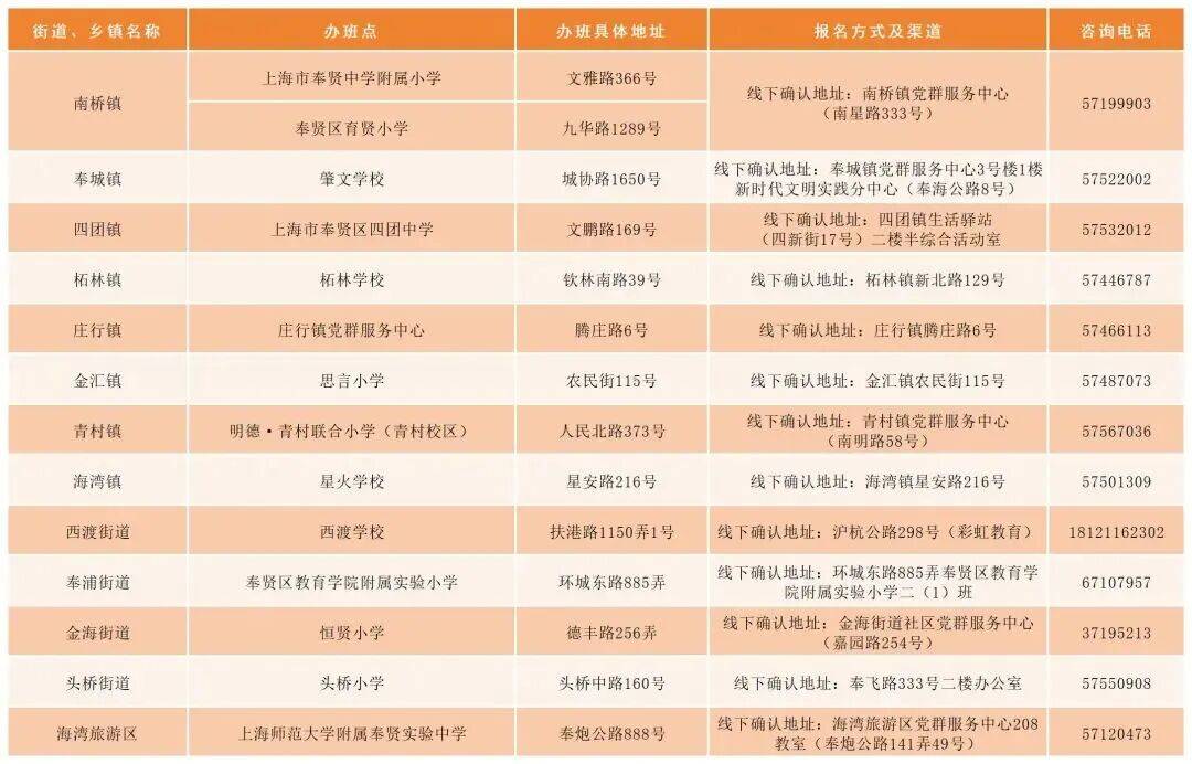 “随申办市民云”APP搜索“奉贤区旗舰店”申请办理。线上报名成功后,线下确认地址详见表格。