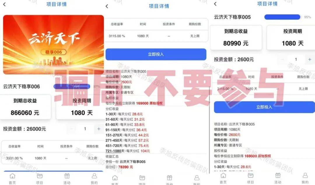 事实上,该项目并无真实商品交易,所谓“预缴费”“代缴额”实为资金池操作,收益完全来源于新用户的投入,而非实际经营利润。