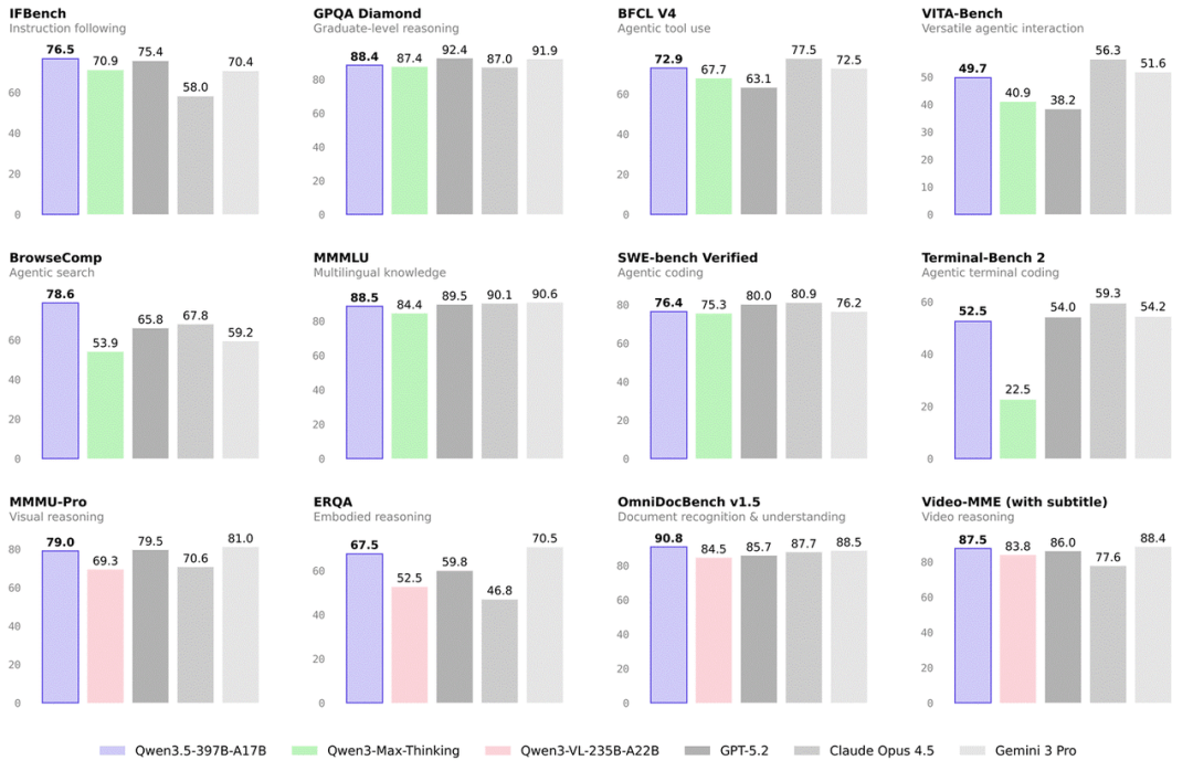 2026-02-20开云体育,开云体育官方网站,开云体育APP下载天,阿里开源全新一代大模型千问Qwen3.5-Plus,397B总参数仅激活17B,性能媲美Gemini 3 Pro,API价格仅为其1/18。千问3.5为原生多模态,推理吞吐量最高提升19倍,在推理、编程、Agent等多项评测中超越GPT-5.2和Claude 4.5。