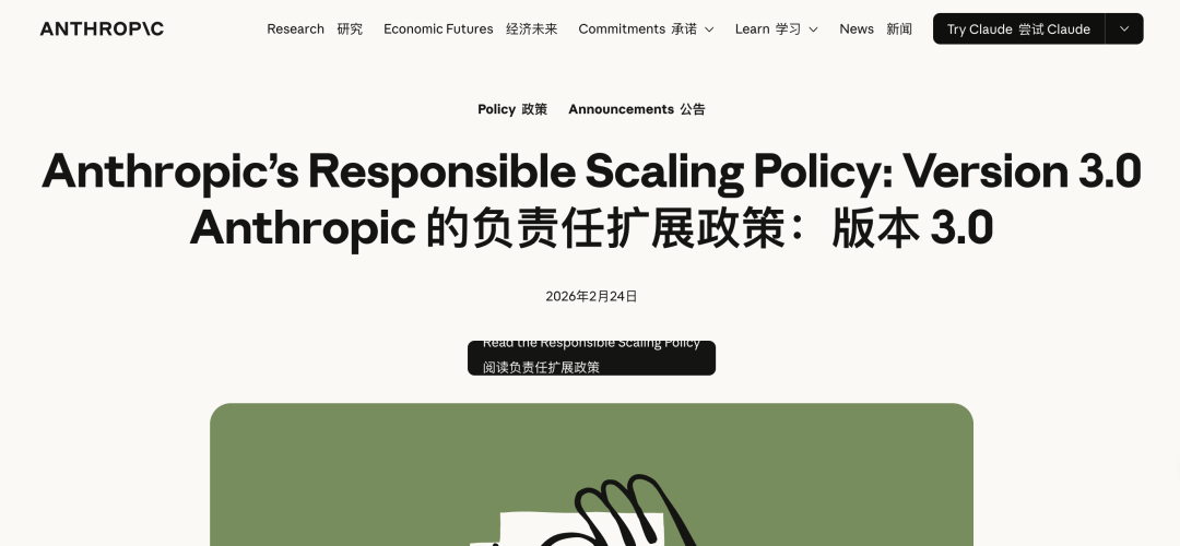 近期,Anthropic 正式发布第三版《责任扩展政策》(RSP V3),宣布对其大模型安全框架进行重大改革。