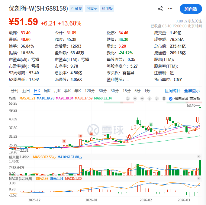 同时,在资本市场,“龙虾概念股”逆势走强,算力租赁板块掀起涨停潮。3月10日,优刻得涨幅13.68%%、博睿数据涨幅16.40%。