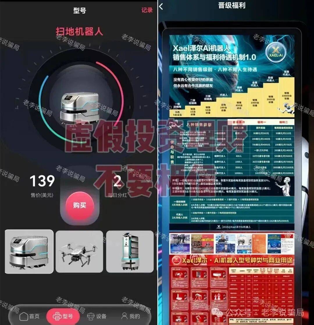 冒充企业,打着“人工智能”的旗号,制作散布涉诈APP,虚构推广机器人理财项目,该项目每日有分红,到期可返本。该软件未经过ICP备案,收款账户为个人、第三方公司,采用传销模式发展下线,涉嫌传销、诈骗。