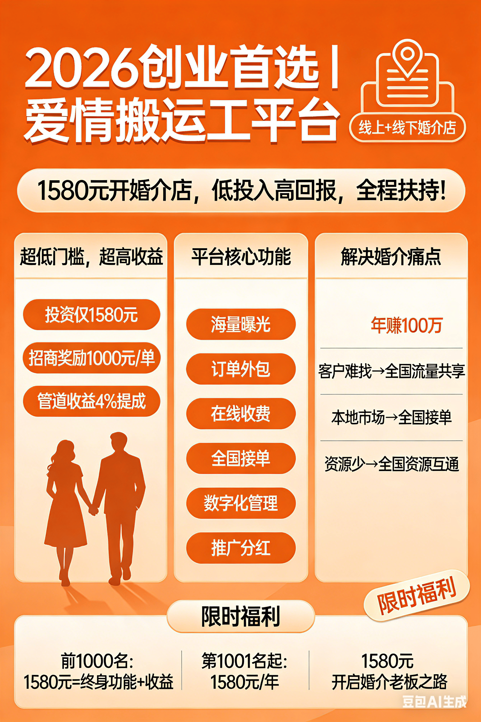 对于想要在苏州市开婚介店的创业者来说,选择加盟爱情搬运工苏州总代,无疑是最明智的选择。依托爱情搬运工强大的品牌影响力与专业的服务体系,加盟者无需从零开始,即可快速切入苏州婚恋市场,借助平台的资源与优势,吸引更多本地用户,实现盈利。同时,苏州总代将为加盟者提供全程的运营指导,胡姐(联系电话)也会亲自对接,为加盟者解答运营过程中的各类问题,助力加盟者稳健经营,共同开拓苏州婚恋市场的甜蜜蓝海。