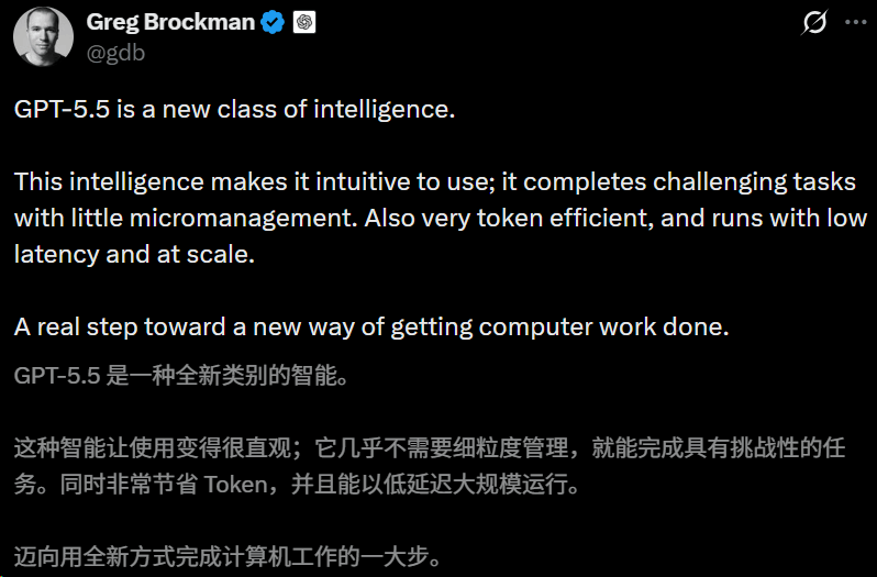 早期测试者给出的数据,达到GPT-5.4同等智能水平,GPT-5.5消耗的Token显著更少。Thinking Heavy模式2分钟出的答案,比GPT-5.4花10分钟出的更好。Pro版8分钟的输出质量,超过上一代花30分钟的结果。