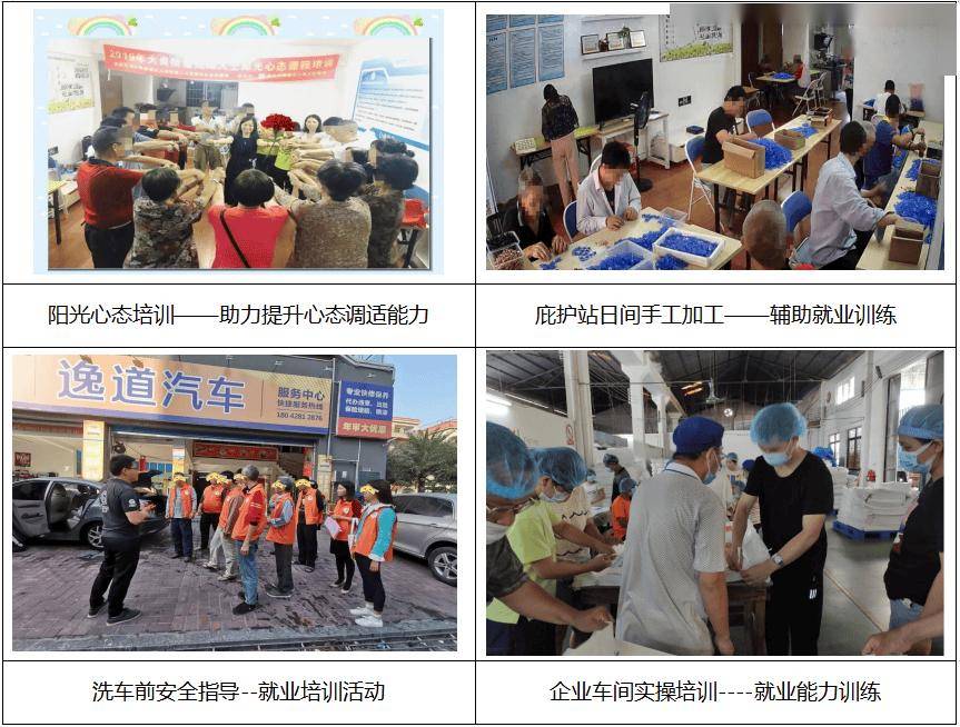 社会功能方面,有的对象社会功能得到有效恢复,典型的个案有南江社区的阿辉和近良社区的阿泉,参与了我们的庇护站服务和连续几期阳光心态培训后,产从拒绝接触陌生人到融进社会人群中,一直在企业工作至今。