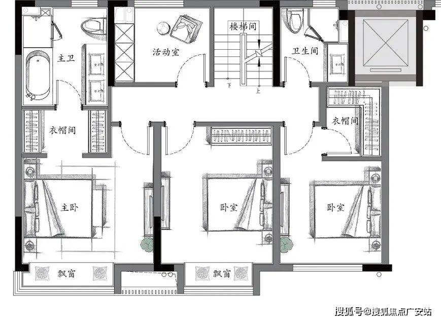二层作为休憩区域,南向三间卧室一字排开,北侧有一间独立的活动室,可以作为儿童房、书房、电竞房、运动室等等,满足每个家庭不同的兴趣需求!
