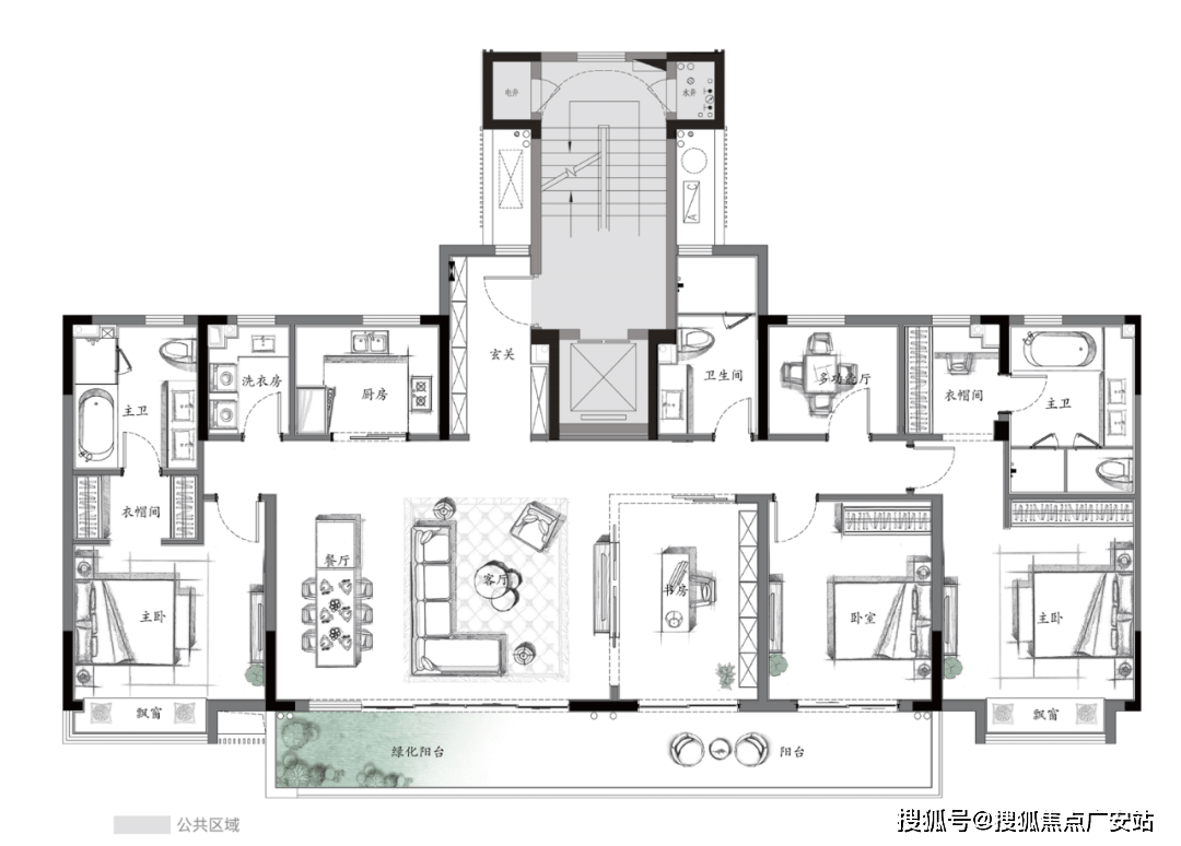 13.8米的阳台,横跨4面宽,这是真的跑道了!!餐厅、客厅、书房一字排开的家庭公共区域,更好地呈现家的满足感和幸福感。