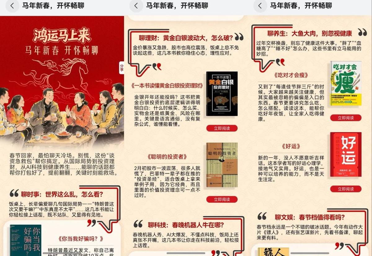 喜欢看书的朋友快“马”住华为阅读的马年新春书单推荐,打开一本《好运》静心阅读也是个不错的选择,新的一年没人不愿意听吉祥话,这本学者写的好运心理学,接地气又实用,遇到书友还能通过“碰一碰”直接分享《好运》,这种以书会友传递好运的感觉还挺奇妙的。