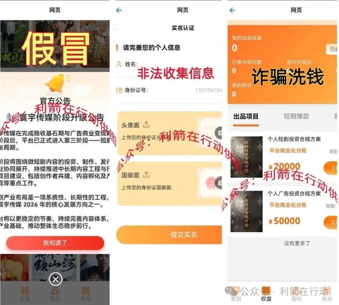 该项目非法收集参与者身份信息,现在谎称“升级”到第三阶段看剧让参与者交钱投资,所谓的“个人短剧投资合规方案”的收款人,全是来路不明的个人账户,因此这是诈骗洗钱的虚假项目。